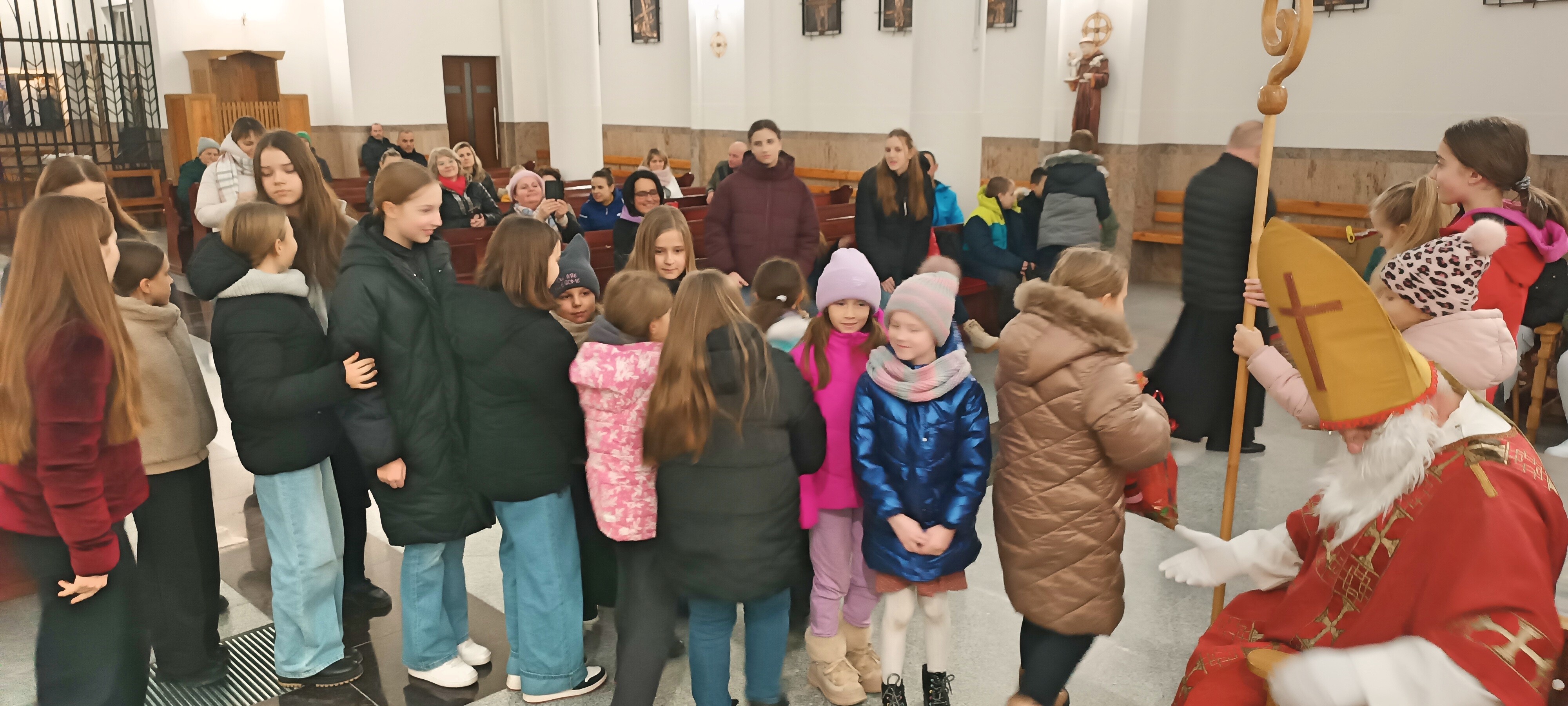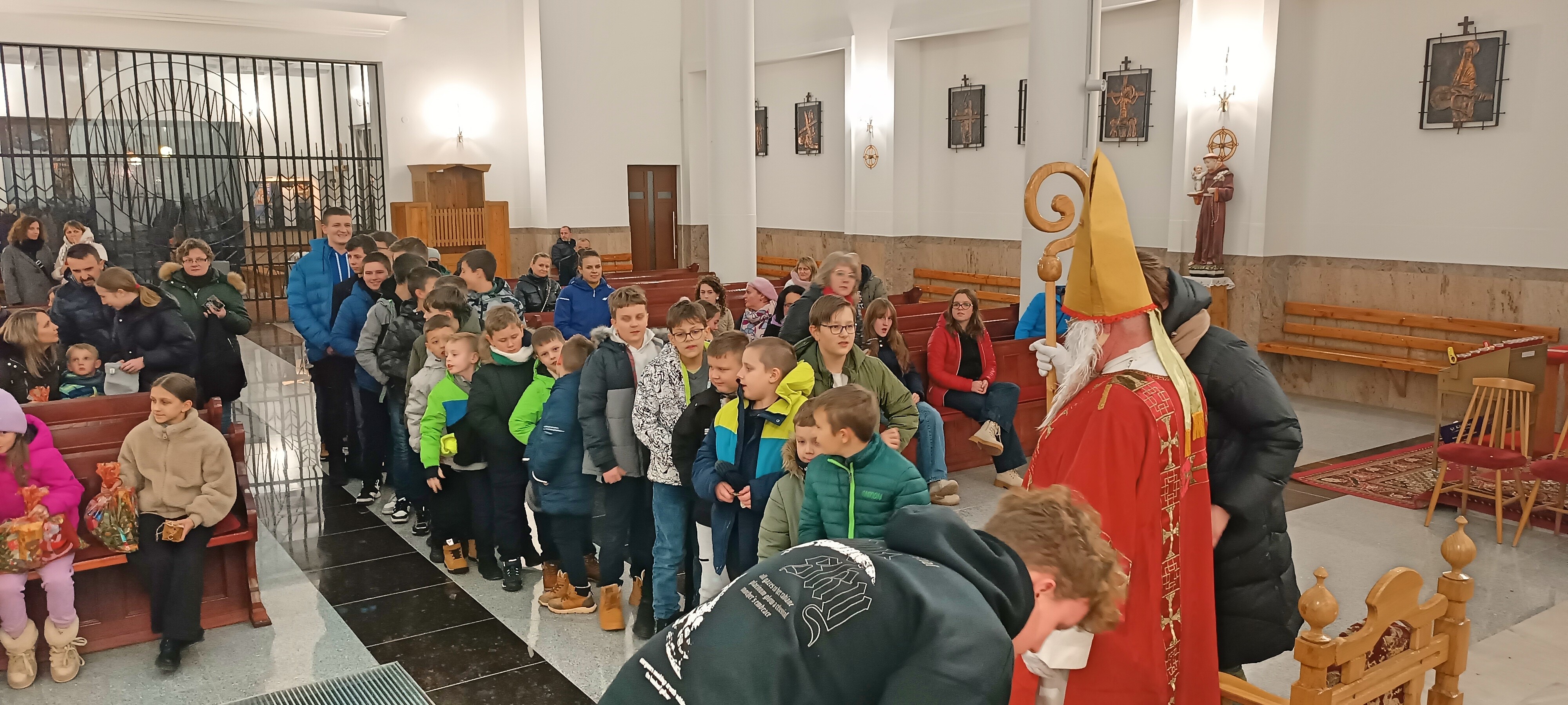 4 grudnia 2025 r. w naszej parafii miało miejsce wyjątkowe i pełne radości wydarzenie. Po wieczornej Mszy Świętej do kościoła zawitał długo wyczekiwany Gość – Święty Mikołaj, który swoją obecnością wywołał uśmiech na twarzach dzieci, młodzieży i dorosłych.
