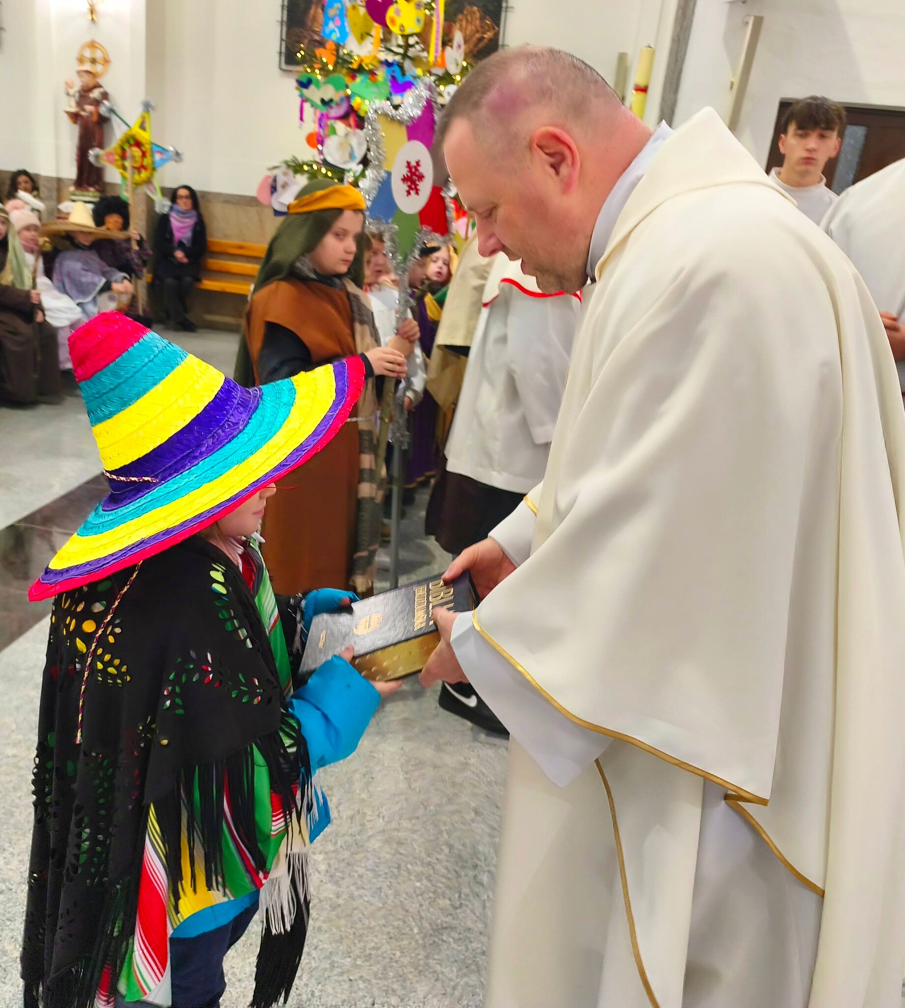 W Święto Świętej Rodziny z Nazaretu, do naszych domów zawitali pięknie ubrani kolędnicy misyjni. Kolędując i śpiewając radośnie, przypominali,że są jeszcze na świecie dzieci, które nigdy nie słyszały o Bogu i które żyją w warunkach, jakich nie potrafimy sobie wyobrazić. Ofiary, które zebrali kolędnicy zostaną przekazane na wsparcie dzieł misyjnych w rejonach Republiki Środkowoafrykańskiej, Kamerunu, Boliwii, Brazylii, Peru i Republiki Konga oraz Demokratycznej Republiki Konga. Jako chrześcijanie mamy zadane, aby kochać – w każdych warunkach i okolicznościach. Mamy możliwość zatrzymania się przy tych najbardziej poturbowanych także przez wojnę. Dlatego od zeszłego roku idziemy z pomocą również dzieciom z miasta Gaza, znajdującego się na terenie Strefy Gazy - palestyńskiej enklawy na terytorium państwa Izrael.