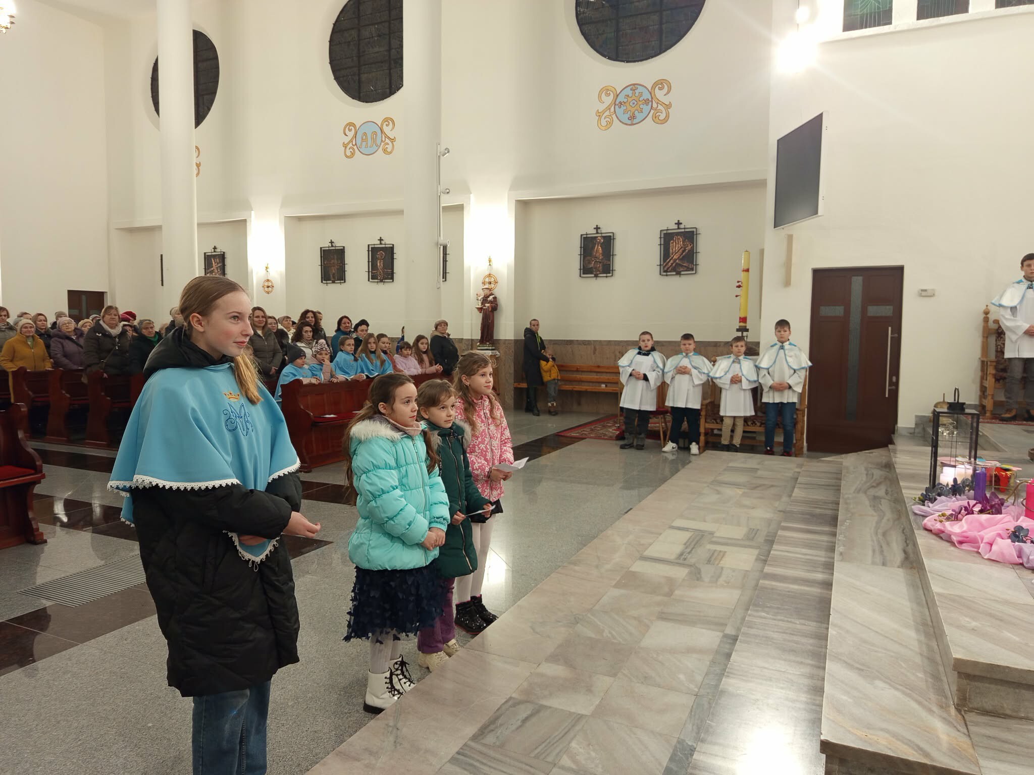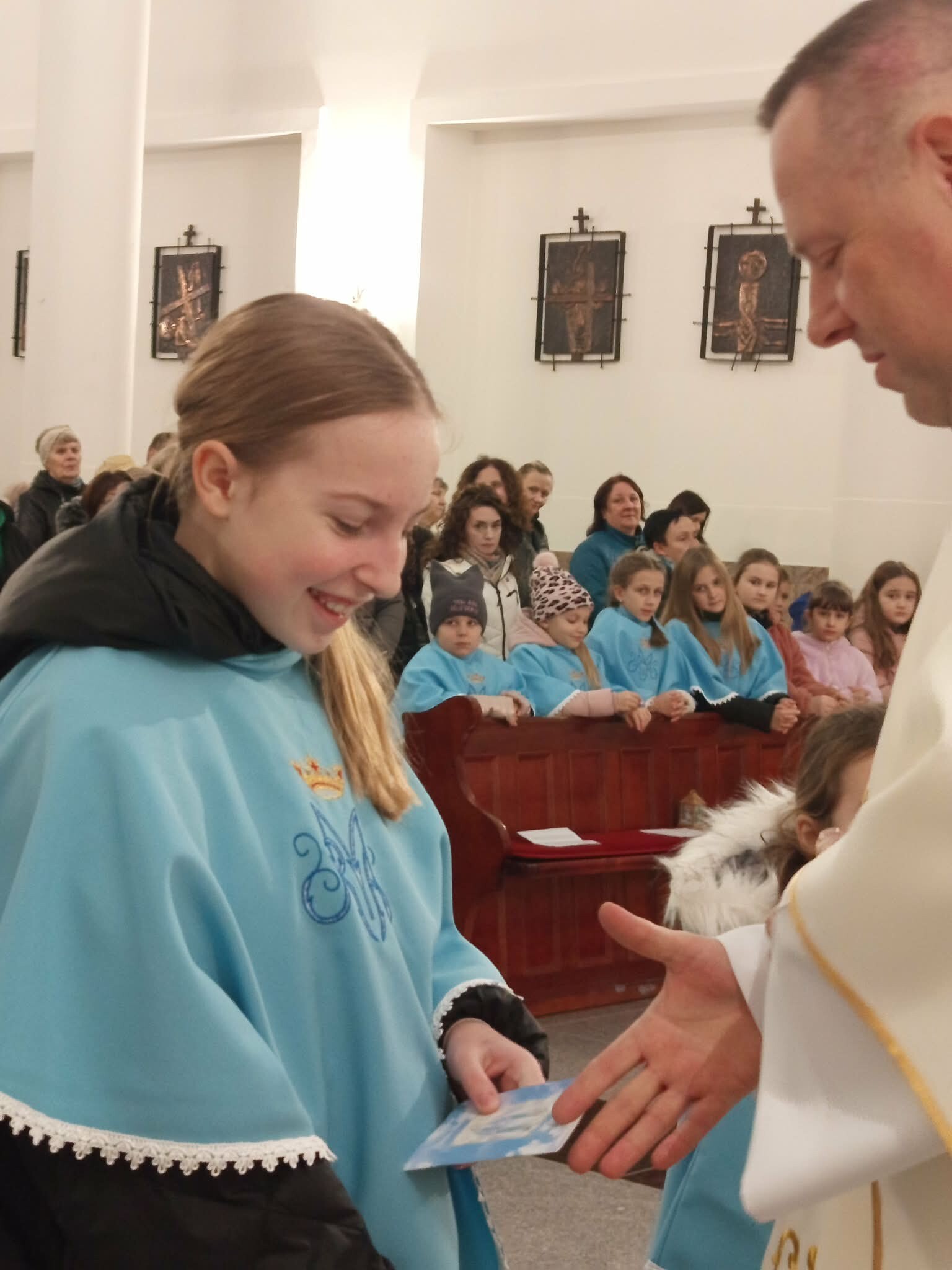 Tak w naszej parafialnej świątyni brzmiały słowa modlitwy ofiarowania się Maryi, którą ósmego grudnia wypowiedziały uroczyście podczas wieczornej Eucharystii trzy dziewczynki nowoprzyjęte do grona Dziewczęcej Służby Maryjnej dziewczynki: Anna Luka, Zuzanna Królikowska i Emilia Szałda. Zobowiązały się one m.in. do wypełniania Pięciu Zadań Dziecka Maryi. Emilia Ćwięka otrzymała kolejny stopień formacji DSMu, czyli Bielanka. Wszystkim Maryjkom życzymy, aby wytrwały w naśladowaniu Maryi w codzienności życia, aby były wierne Jej pragnieniu, poprzez które zaprosiła Ona te dziewczęta do szczególniejszej bliskości z Sobą.